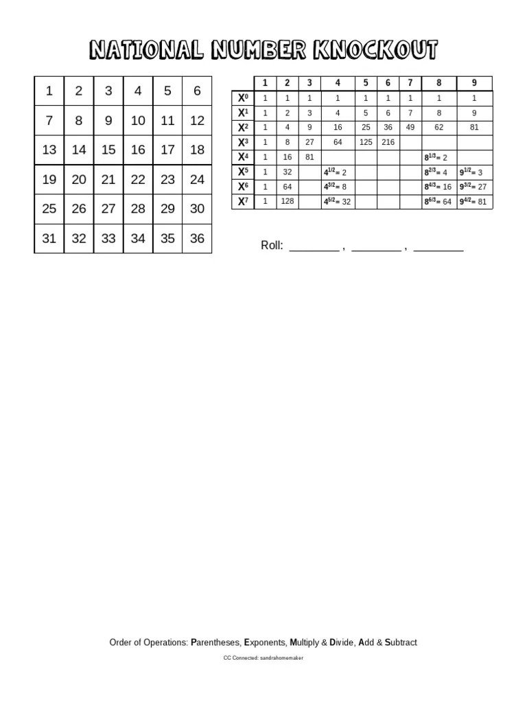 Number Knockout Printable - Web national number knockout, or n2k, is a math competition that encourages the improvement of calculating speed and. Web here are some printable versions of the n2k classic game board and the 2015 scouting video game board. Web this site utilizes essential and enhanced cookies in order to optimize your experience. Web in our community, our essentials tutor has given me permission to share her variation of this game by. By clicking accept and continuing use of. Web board slam / n2k math game calculator. Written april 2018 (updated september 2019) classical conversations (homeschool). Web in today's video, we're going to delve into the world of numbers like never before with a focus on essentials:. X x x x x x x x | pdf.