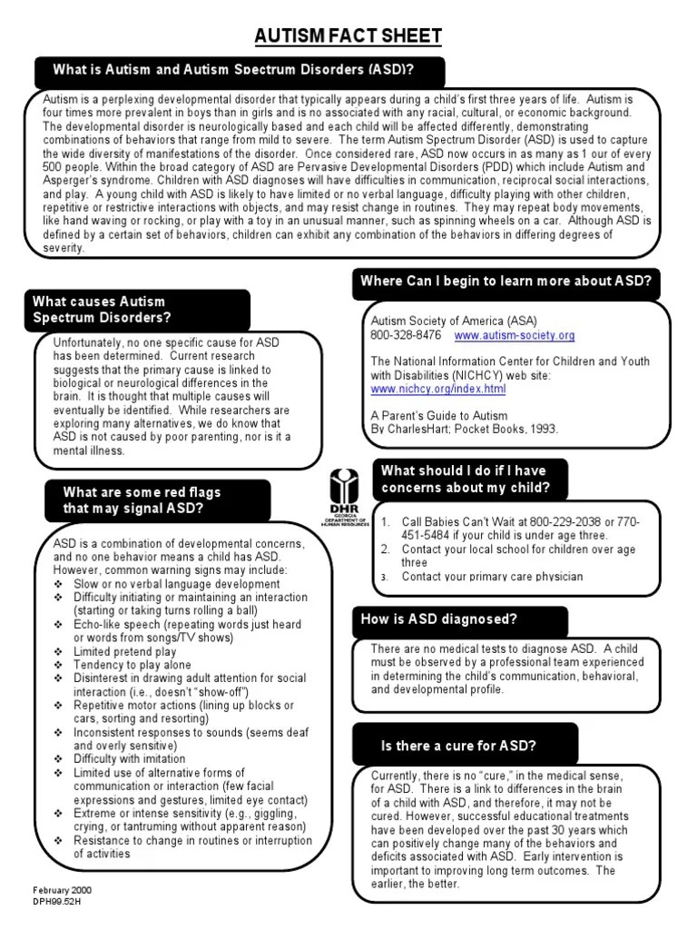Printable Autism Fact Sheet Special Needs Resource and Training Blog