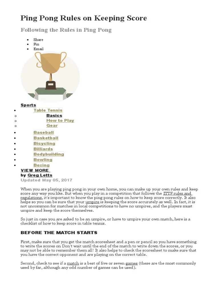 Ping Pong Rules on Keeping Score.docx Table Tennis Team Sports